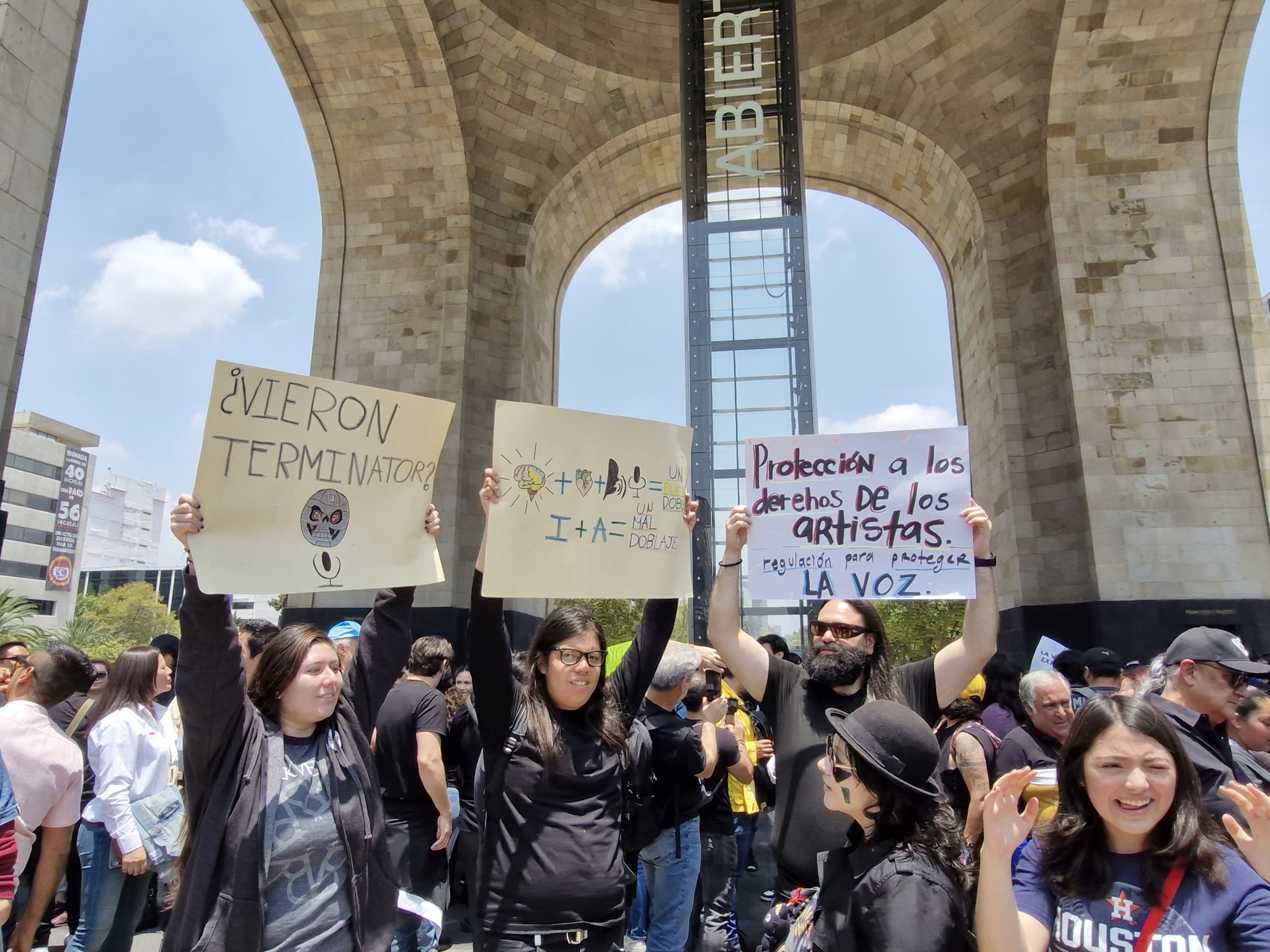 Locutores, actores y artistas de la voz realizan una manifestación pacifica en el Monumento a la Revolución para exigir una regulación ética de la #InteligenciaArtificial para evitar que sus voces sean clonadas, imitadas o reemplazadas sin consentimiento | @berthaliciag pic.twitter.com/CEu97UcT0Q